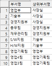 단, 상위부서가 없는 사장실도 함께 출력